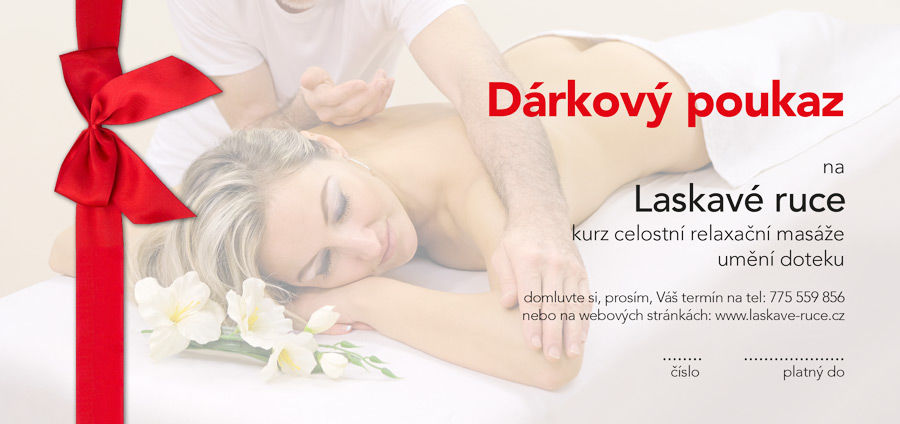 Pokud svým blízkým věnujete kurz celostní relaxační masáže Laskavé ruce (je určen i pro úplné začátečníky), obdarujete tak i sami sebe: kromě radosti z darování se možná dočkáte, že oni budou poté masírovat a hýčkat Vás.